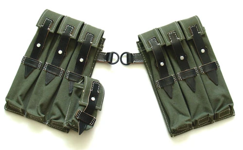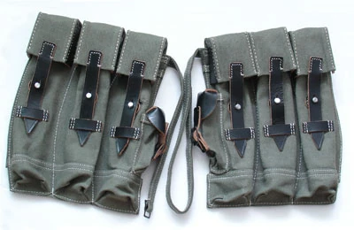 The Gewehr-43 ammo cases were much like the Karabiner 98 cases except they were bulkier. That is because they carried 10-round detachable box magazines rather than stripper clips. Each ammo case had two pouches that could carry two magazines each.